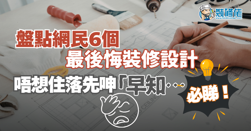 花咗幾十萬甚至上百萬裝修,滿心歡喜準備迎接理想新居,點知住落先發現處處「唔順手」?最近網上掀起熱烈討論,唔少網民紛紛大呻「早知裝修嗰時就⋯⋯」,列出自己屋企嘅「後悔設計」。裝修佬就綜合咗近年網民盤點出最常見嘅後悔設計,裝修前記得睇清楚,唔好畀自己後悔嘅機會!